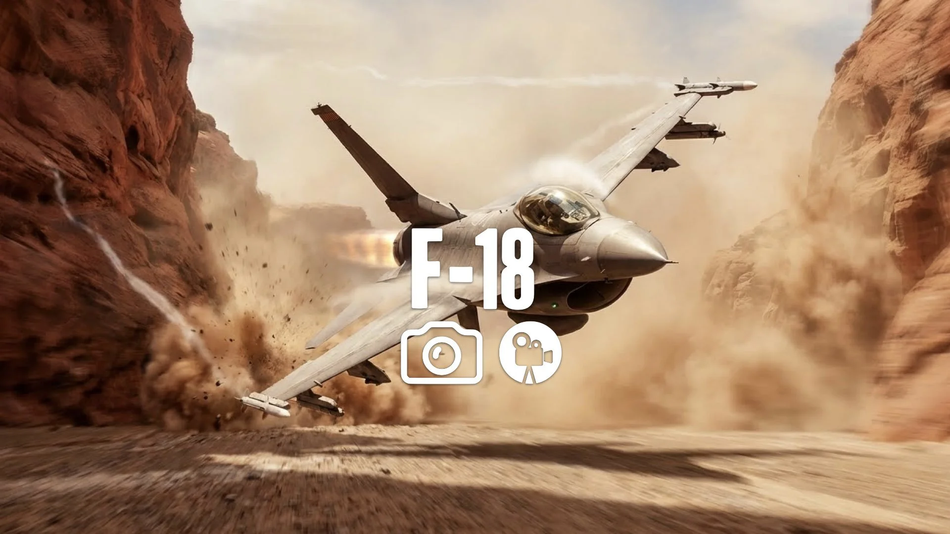 1. Canyon run fighter jets banking low hard turn g-force pulling dust kicking up ground rush no music