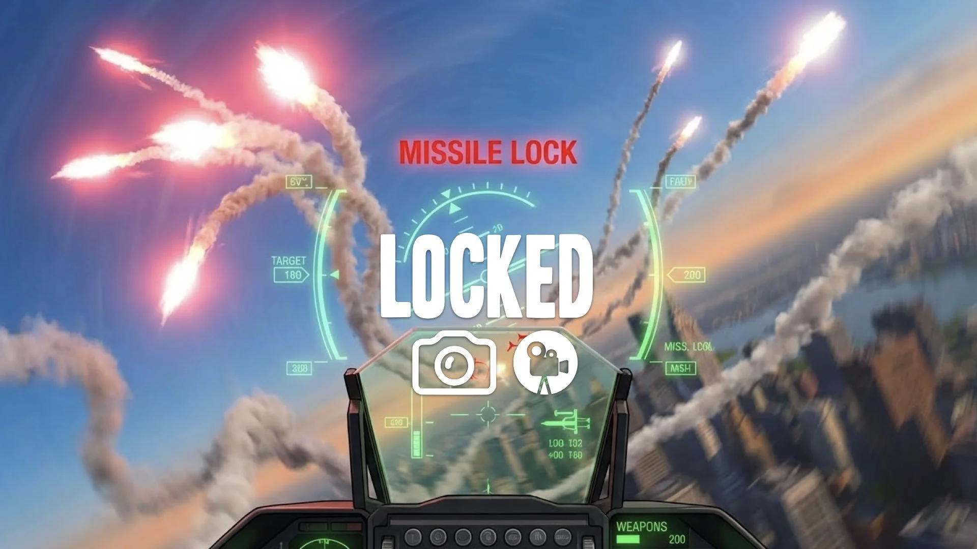 1. Dogfight flares popping smoke trails missile lock hud overlay spinning horizon chaos no music