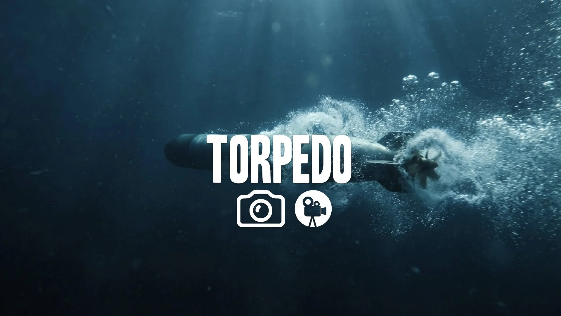1. Torpedo firing underwater bubbles trail propeller spinning murky blue ocean deep cinematic no music