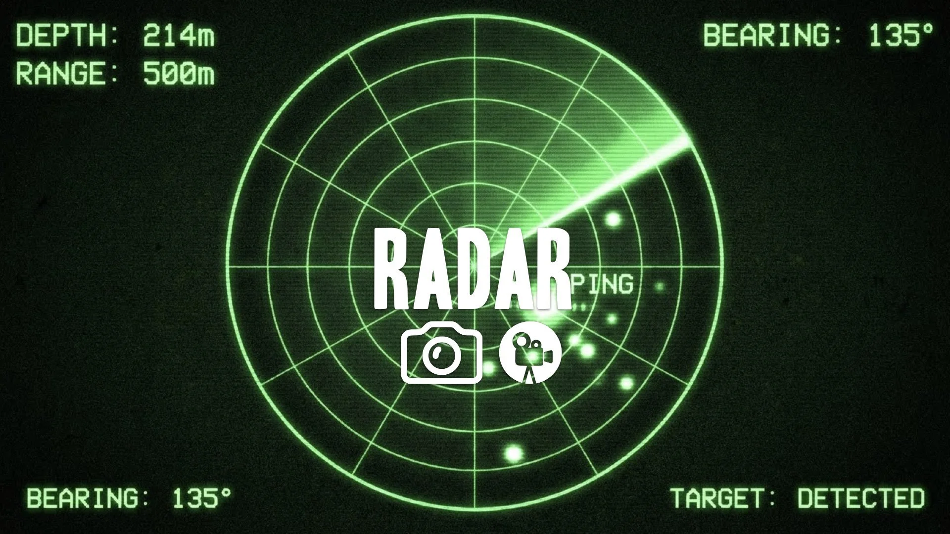 1. Sonar screen green radar sweep blip ping glowing detection interface grain texture no music