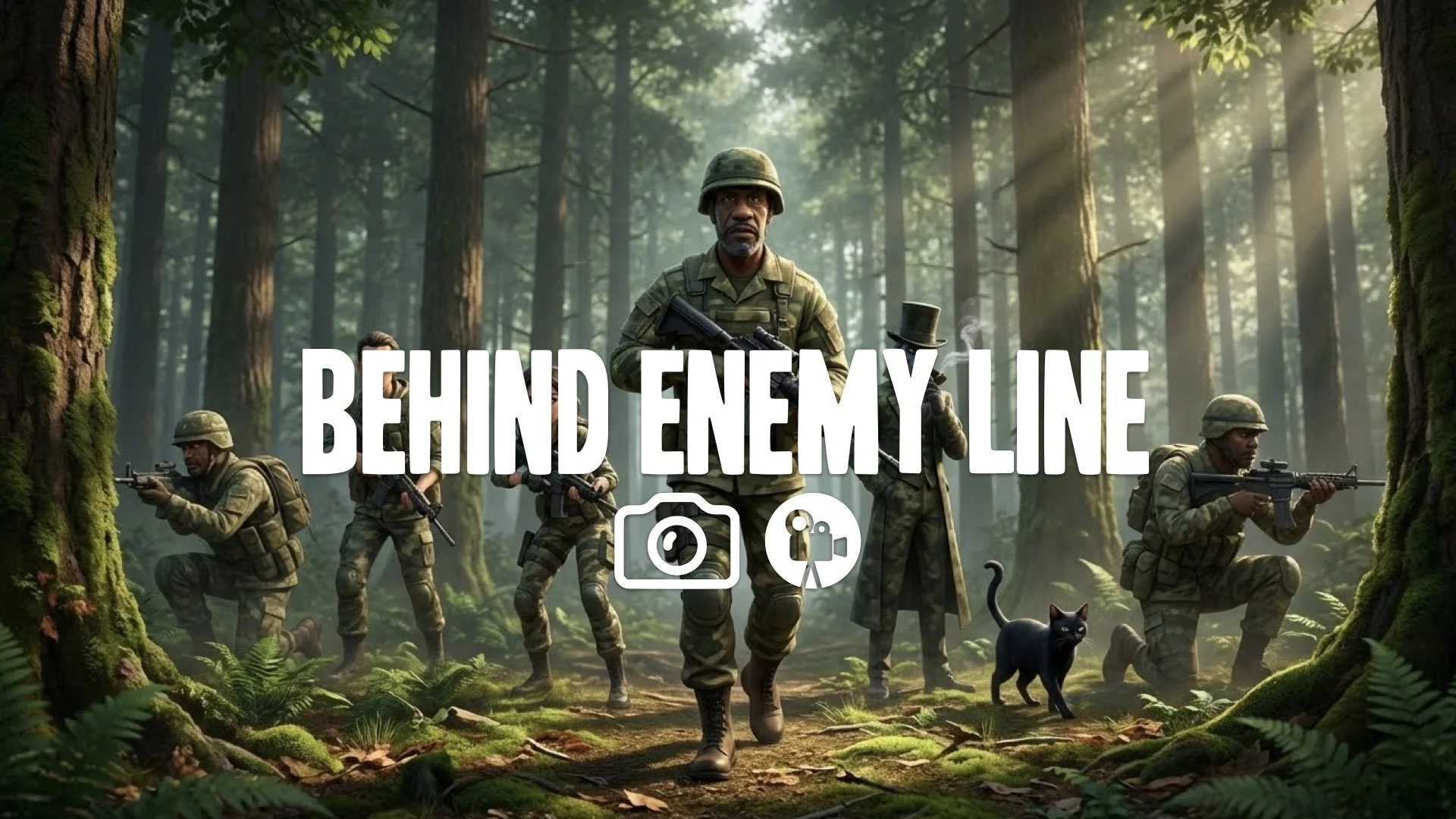 1. Rebel army moving through dense forest camouflage shadows sun filtering through leaves stealth movement no music