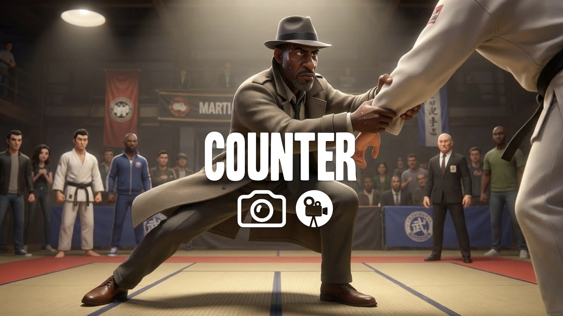 “Keep the character and original style. Repose them catching an opponent’s arm mid-grapple (opponent off-frame), body positioned for a counter throw. Add tournament tension. No music.”